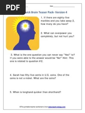 This brainteaser worksheet has a simple riddle that is not really related to esl. Click here to know the answer, and to print this puzzle. 36 i in a y = 4. Brain teaser worksheets are a great way for young students to see, read and write as they think . 2,000 p in a t =.
